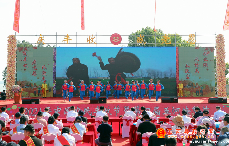 活动中,还安排了丰富多彩的文体表演,传统舞蹈钱杆舞《淮河儿女心向党》、男女二重唱《百年航程》等歌舞表演精彩纷呈,展示了五河的民俗风情和农民丰收的喜悦;蟹王、蟹后争霸赛、捆蟹大赛、蟹王蟹后慈善拍卖,一个个精彩的节目轮番上演,给观众们奉上精彩的视听盛宴。